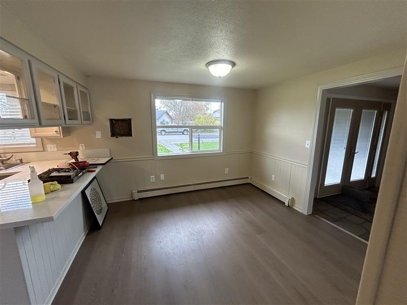 Welcome to 209 E. 3rd St., a charming 3-bedroom, 2-bathroom duplex style living with an office. Located in the heart of Everson, WA. This recently remodeled home boasts a spacious living room, complete with a cozy fireplace, perfect for those chilly evenings. The unit also includes a washer and dryer for your convenience. The additional office space is ideal for those who work from home or need an extra room for hobbies. Situated on a corner lot, this property offers a private patio with a partially enclosed privacy fence, perfect for outdoor relaxation or entertaining. The French doors add a touch of elegance to the space. The home also features a wet bar, perfect for hosting guests. The large primary bathroom is a true sanctuary, complete with a sauna for ultimate relaxation. Come and experience the comfort and convenience of 209 E. 3rd St.